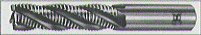 特長_______EXラフィングエンドミルは、波形外周刃をリ−ドのない 研削仕上げにしてあります。切りくずを小さく分断して排出し、切削抵抗が小さいためビビリも起こさず、重切削できるので高能率加工が可能です。