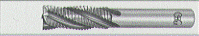 特長_______EXラフィングエンドミルは、波形外周刃をリ−ドのない 研削仕上げにしてあります。切りくずを小さく分断して排出し、切削抵抗が小さいためビビリも起こさず、重切削できるので高能率加工が可能です。