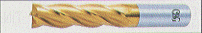 特長_______TiN(窒化チタニウム)をエンドミル表面に溶着させたもので、耐摩耗性と耐溶着性に優れ、ステンレス鋼、調質鋼、耐熱鋼、ダイス鋼などの難削材加工に特に効果を発揮します。